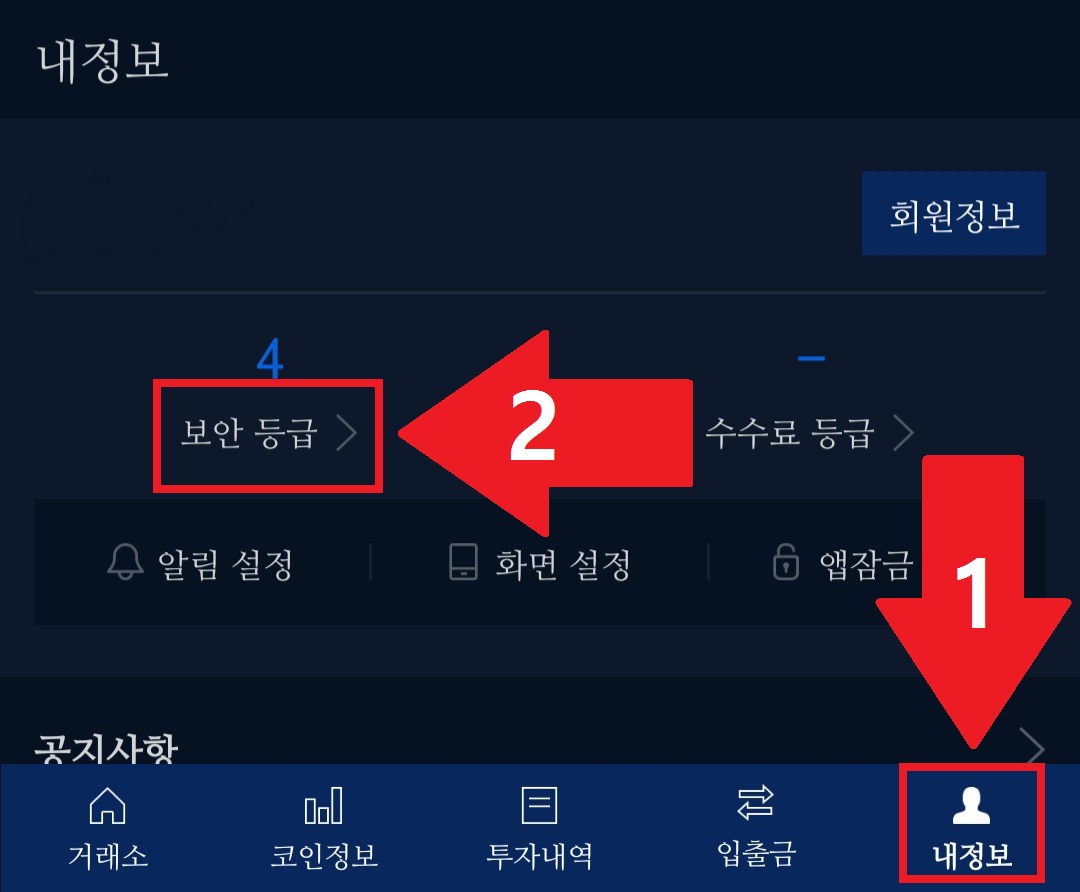 '내정보'에 들어가서 '보안 등급'을 선택합니다.