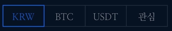 KRW, BTC, USDT는 코인을 살 때 쓰는 통화를 말합니다. KRW는 한국원화(한국 법정화폐)입니다. BTC는 비트코인이고, USDT는 테더(미국달러가치를 추종하는 토큰)입니다. 이게 무슨 말이냐면, 각 통화에 따라 살 수 있는 코인이 나누어져 있다는 것입니다.