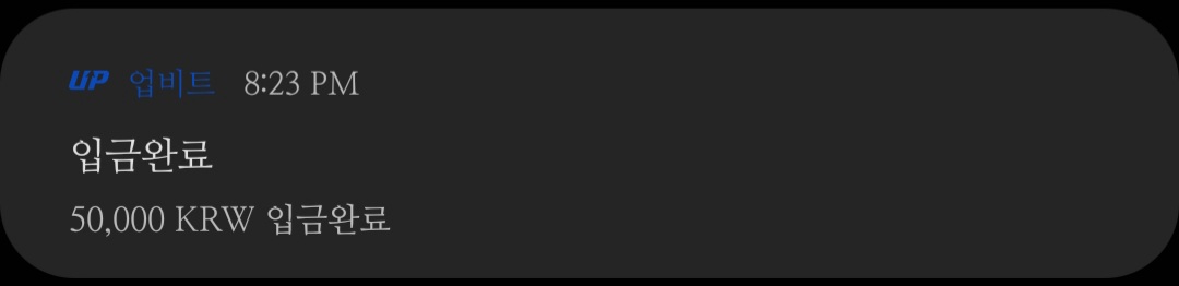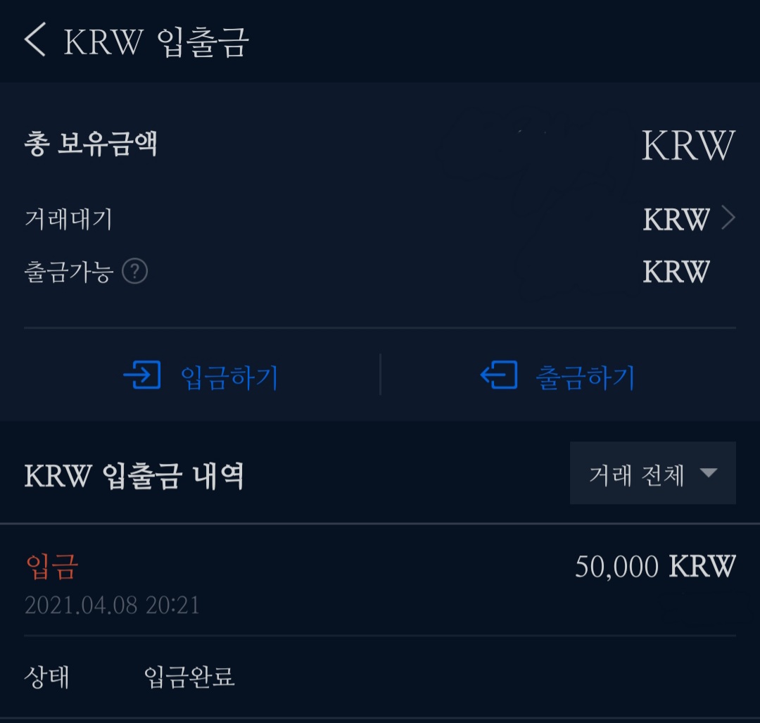 인증을 완료하고 잠시 기다리면 업비트에서 입금이 완료됐다는 알림이 오고, KRW 입출금 창에서도 입금완료 상태를 확인할 수 있습니다.